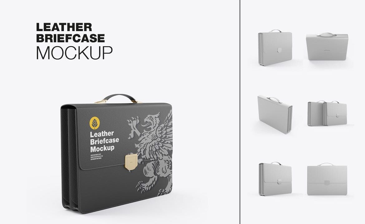 Set Leather Briefcase Mockup