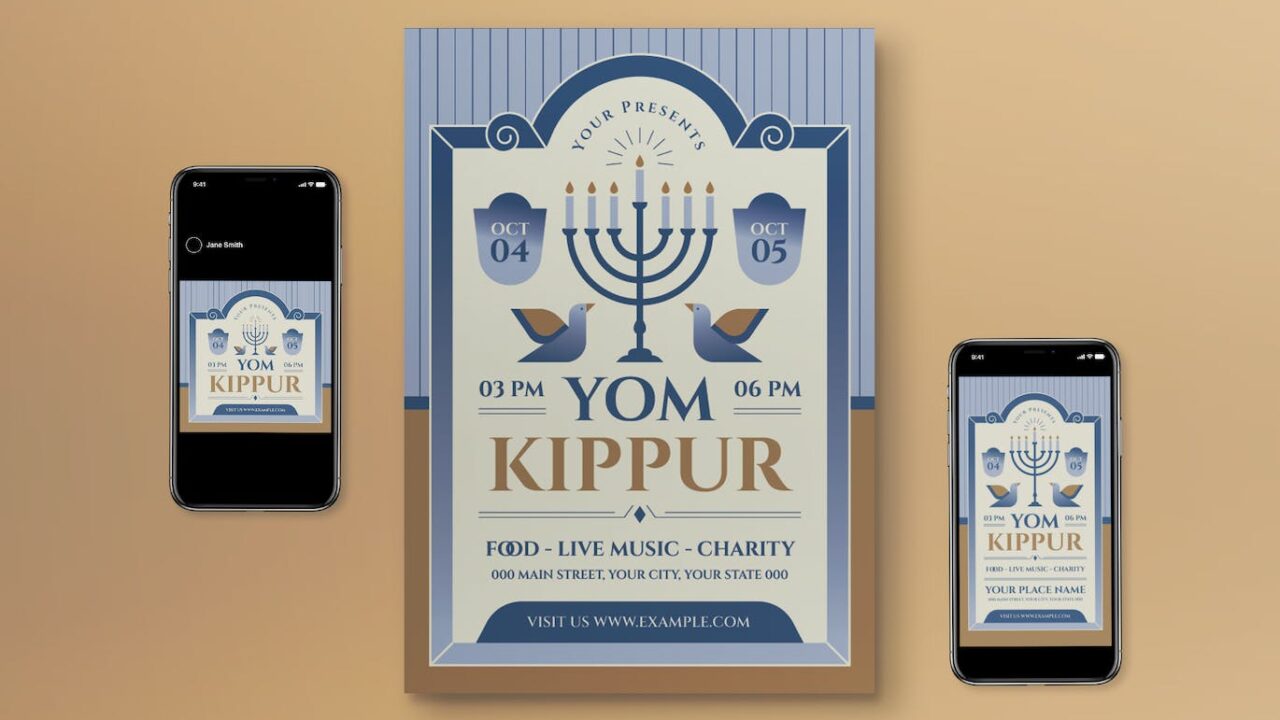 Blue Gradient Flat Design Yom Kippur Flyer Set