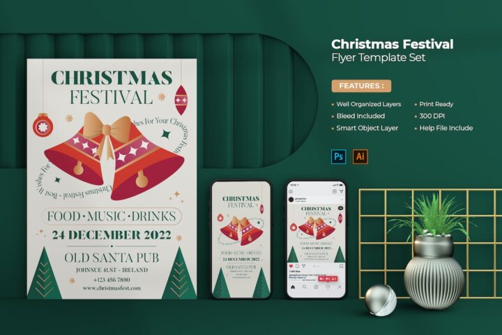 This Christmas Party Flyeris perfect for the promotion of Every Christmas Events, Christmas Parties, Christmas Day Festivals, Christmas Day Carnival or Whatever You Want! The template is very easy in usage, in branding and adapting to your goals. You can set any color and text into the placeholders and create the atmosphere you want. Customize it using your brand colors, font, and text.