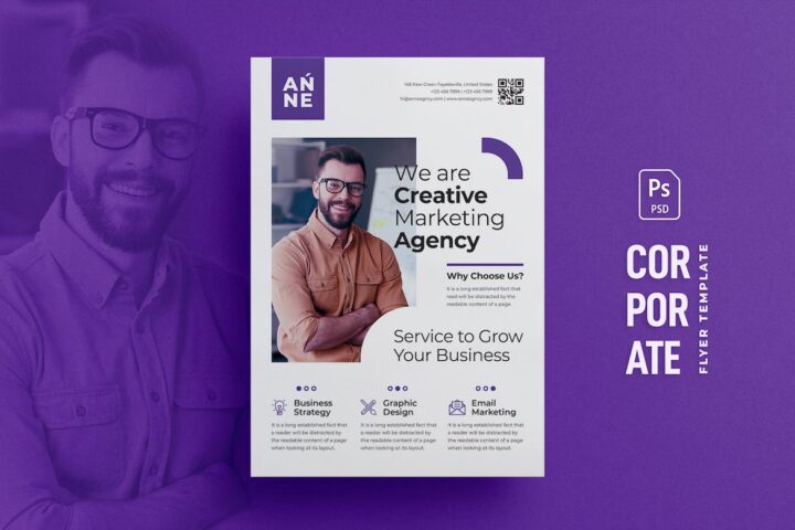 A4, Multipurpose, Flyer, Corporate, Marketing, Trading, Creative, Modern, Minimalist, Portrait, Digital, Blue ,Purple, Agency, Business, gfx