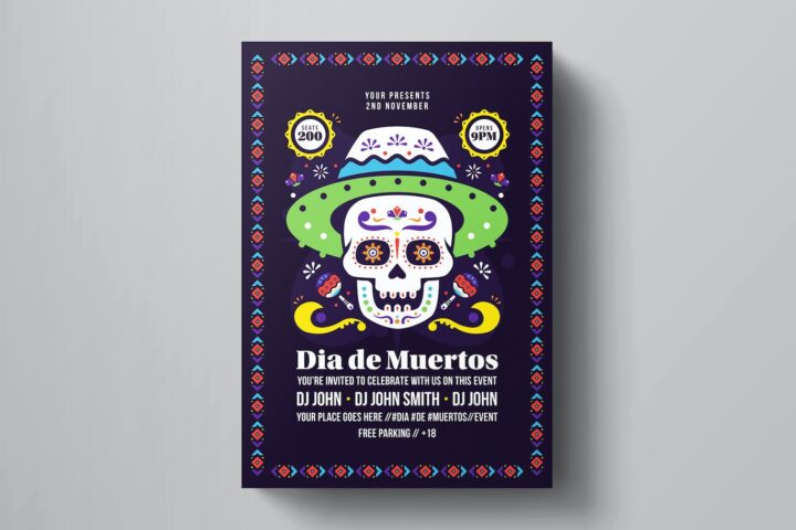 This Dia De Los Muertos flyer template is especially designed for those who want to promote their Dia De Los Muertos night party in a funny , professional and deadly way.