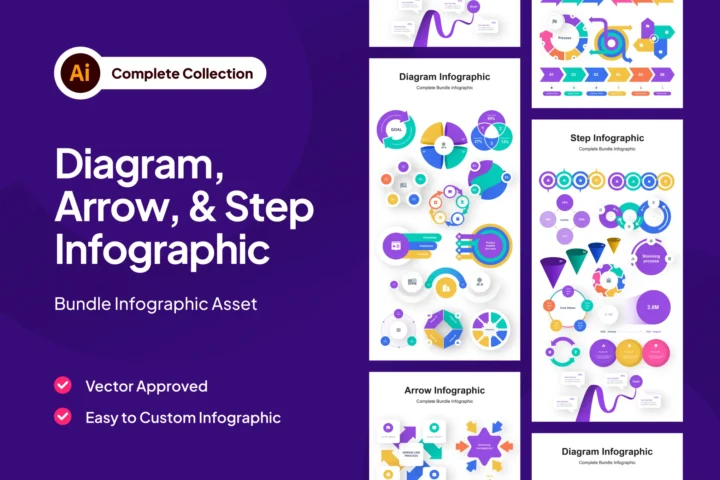 Do you need a infographic that can easily convey your information to your audience? Collection Infographic is the solution! we prepare Diagram Collection Infographic Asset Illustrator with chart that are neatly laid out and easy to edit. Not only the chart but also the infographic inside are also well organized and ready to accompany your project.
