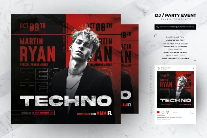 This template is great for dj events, club events and dance / after parties. You can easily add your image and texts, template is very organized and easy to edit. All the effects will automatically apply when you add your image.