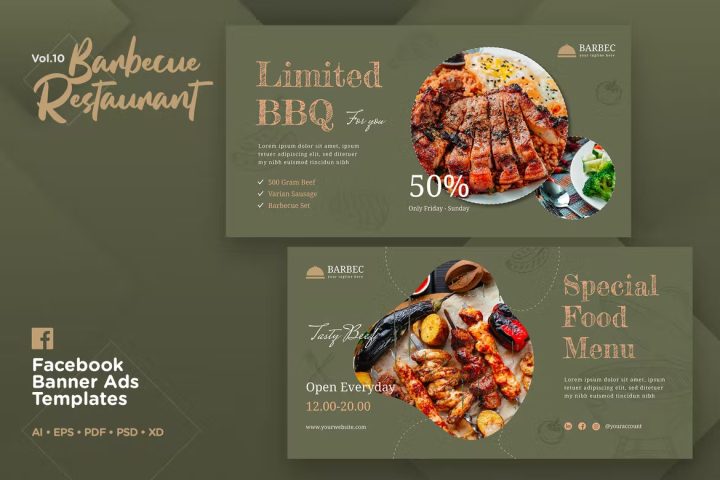 Facebook Ads Banner Vol 10 Barbecue Restaurant