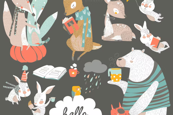 Animal, Autumn ,Fox ,Set ,Bear ,Rabbit ,Reindeer ,Pumpkin ,Book ,Reading ,September ,Cup ,Forest ,Wildlife ,Rain ,gfx