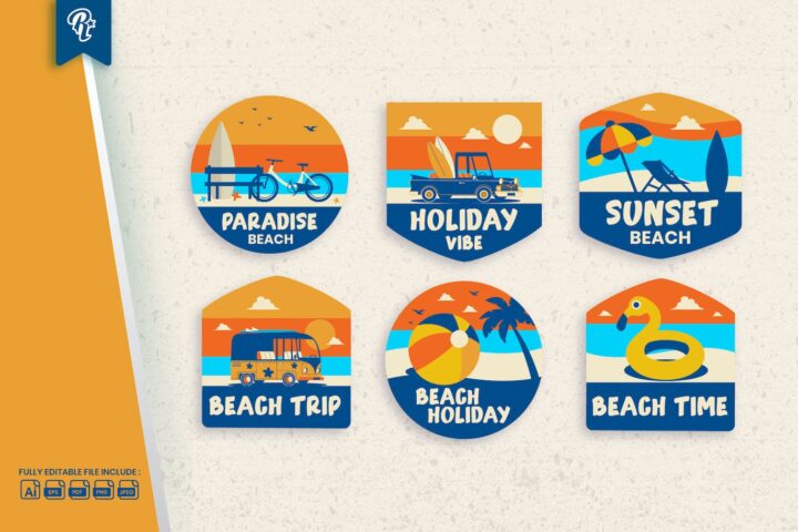 Beach, Holiday, Badge, Sticker, Label, Patches, Travel, Playful, Flat, Rasiorise, Collection, Surfing, Logo, Vacation, Summer,