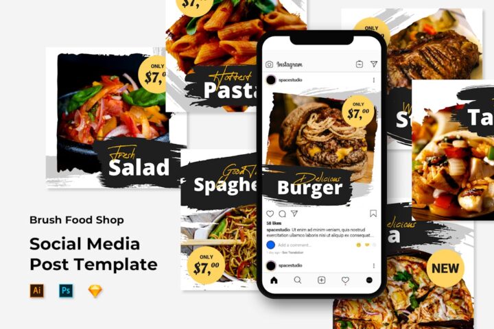 Social, Media, Instagram, Template, Kit, Pack, Post, Pinterest, Facebook, Banner, Food, Restaurant, Foodies, Cafe, Menu,