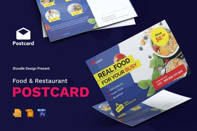 Food, Restaurant Postcard Template is a clean and unique design so far using the latest trendy material design for restaurant, menu food, coffee, healthy food, restaurant menu, salad, sandwich, template, vegetable