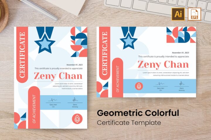 Do you need a Certificate that can easily convey your information to your audience? Geometric Colorful Certificate Ai & EPS Template is the solution! we prepare Geometric Colorful Certificate Ai & EPS Template with layouts that are neatly laid out and easy to edit. Not only the layout but also the layers inside are also well organized and ready to accompany your project.