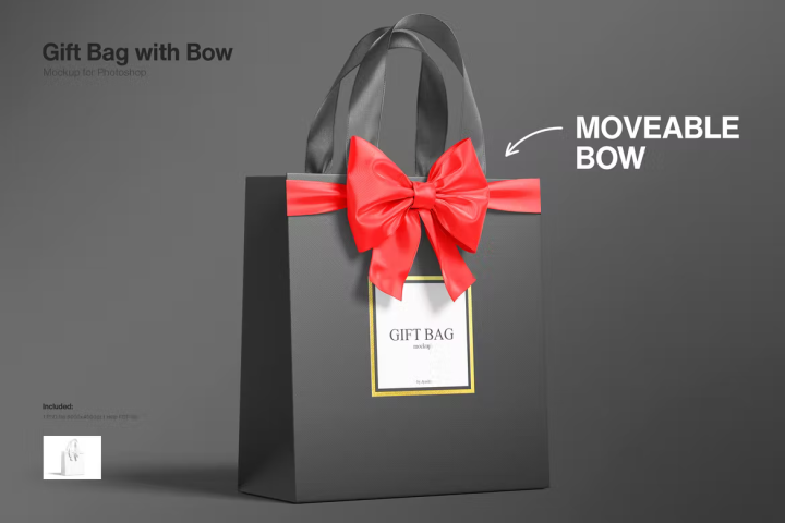 Photorealistic and easy to use Gift Bag with Ribbon and Bow Mockup.