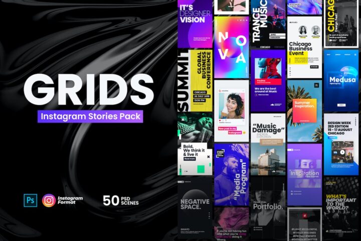 50 Instagram Stories Pack Templates suitable for all social media promotions.