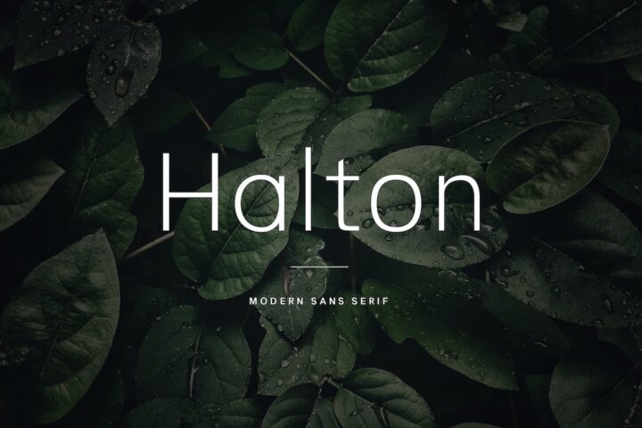 Halton is a minimal and slightly condensed sans serif typeface. It has a little bit of personality and can be used for both headers and body copy. This font family includes all Latin characters (including accents), numbers, special characters, and punctuation.