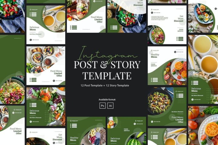 This template includes 12 unique and cool Instagram posts and Story templates in PSD and AI format. You can edit and customize easily using Adobe Photoshop and Adobe Illustrator.