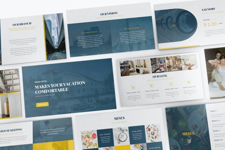 Hotel Vegas Google Slides Template is a hotel and home stay google slides template, come with flat design, clean, classic, minimalist, modern presentation, fit for creative industry such as travel agency, the weekender, escape, gateway and other industry