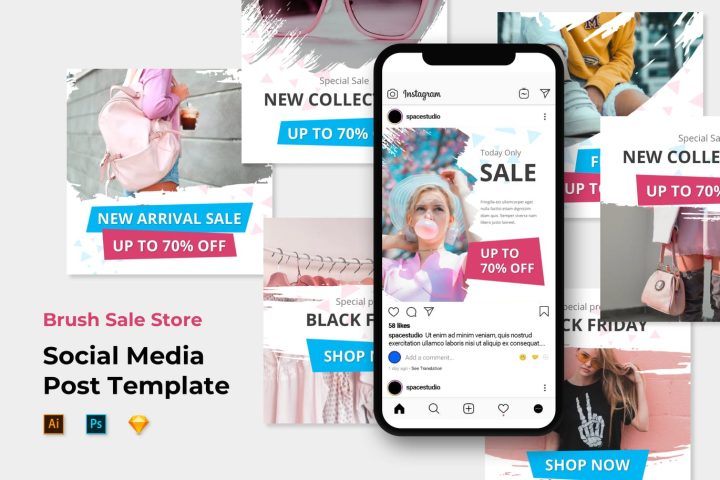 Give your instagram accounts a design upgrade with the Brush Sale Store – Instagram Post/Feed Templates. This template contains 9 fully editable and customizable instagram post/feed that were designed in Sketch, Photoshop and Illustrator to stand out of the crowd. This kit is ideal for bloggers, fashion brands, lifestyle bloggers, magazines and techno blogs who doing sport related activities or campaign.