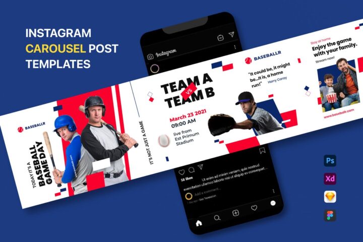 Baseball Sport Team Instagram Post Carousel Templates is designed to make it easy to create all of your social media posts, giving you more time to make what you do best look even better!