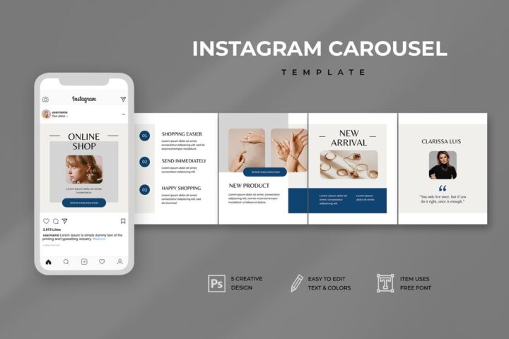 Welcome to professional, clean, modern, and elegant posts for Instagram Carousel. Boards of inspiration, portraits, Shopping Lovers, and much more in one set! amazing posts for your promotion!