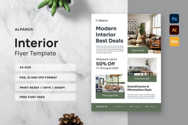 ALPARUS INTERIOR FLYER – Flyer Template for Adobe Photoshop & Illustrator. Perfect for your business and to promote your next publication. Can be used as a Multipurpose flyer. Build in A4 format, Easy to use.