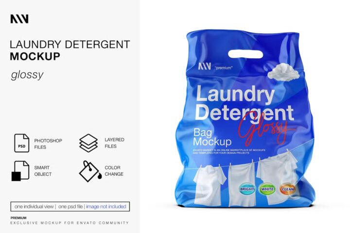 Laundry, Detergent, Powder, Mockup, Washing, Soap, Clothing, Clothes, Packaging, Package, Product, Glossy, Bag, Shop, Cleaning, gfx