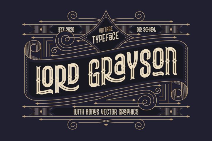 Introducing a vintage font “Lord Grayson”. This typeface has a victorian medieval look. It’s a decorative classic style font with lot’s of ligatures and stylistic alternates. This OpenType features will help you to create a unique lettering compositions.