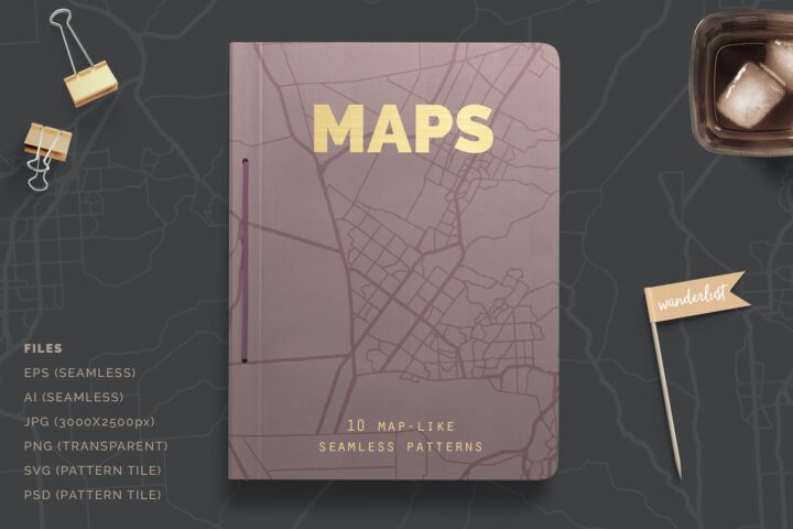 Hello, introducing this new set of 10 Map – like seamless vector patterns.