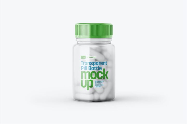 New amazing Transparent Pill Bottle Mockup 4k background, and trendy design. This mockup can use for the pharmacy, medicine, health, vitamin, supplement, and other medical packaging and branding designs.