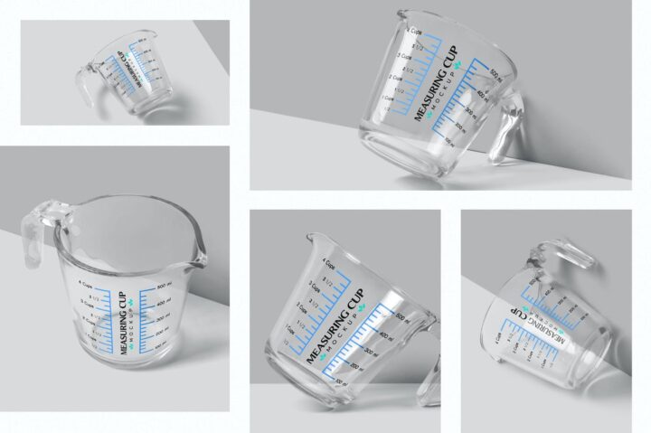 These measuring cup mockups are perfect for those designers that are looking to display their kitchen tools designs realistically. This cup mockup set includes 5 PSDs captured from different angles to show your design realistically. The editing of these mockups is super easy due to presence of smart object option and well-named layers.