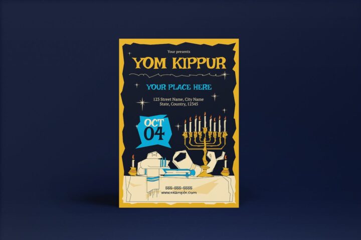 Flyer, Poster, Brochure, Design, Template, Midcentury, Yomkippur, Jewish, Hebrew, Judaism, Tradition, Religion, Candle, Light, Graphicapital,
