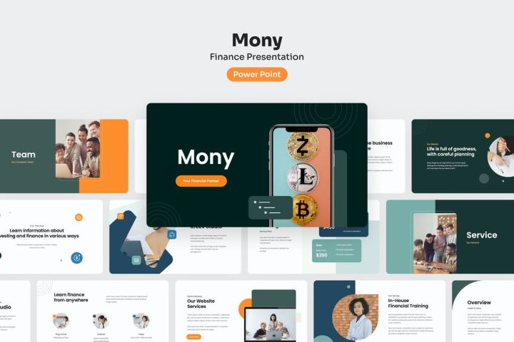 Mony is a pitch deck template in finance, such as financial consultants, banking, and financial apps. In addition, this template can also be used for other purposes such as design agency, portfolio, company profile, startup, business, and also for personal portfolio.