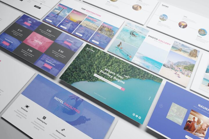 Nauna – Travel Agency Powerpoint Template for your Travel business. Clean design make your traveling business stand out, with simple, clean, and minimalist design concept. for high quality brand presentation asset.