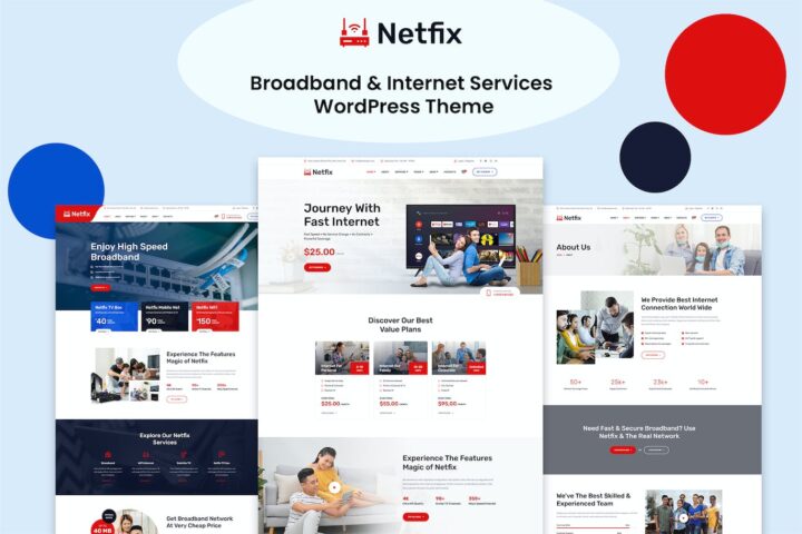 Netfix is a Broadband & Internet Services WordPress Theme for your Broadband and ISP business website. This can be used for any internet-based service company including Broadband & ISP, VOIP, IPTV, Telecom, Technology, Digital Agency, IT Solutions, VPS and Dedicated Root Servers, Computer Networks, etc. The template is built on Bootstrap 5.x, Sass with AJAX-enabled contact form submission.