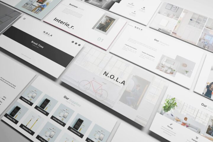 Nola Interior Design Powerpoint Template is for those who like minimalist and simple design. Interior design agency might love this template to help their marketing proposal. High quality brand presentation asset.