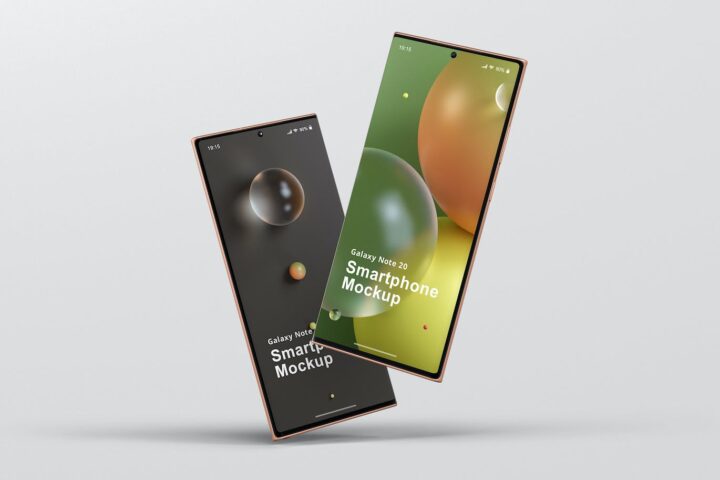 Present your designs with this Phone Mockup Galaxy Note 20 in no time. Easily customizable with organized, named layers, separated, and moveable objects. The included pre-made scenes get you going quickly with great results. Or use the 16 Galaxy Note 20 mockups in various views and angles to create your own scene. Infinite possibilities are fast and easy to create in a few clicks. All devices are customizable in every detail like device color, shadow, reflection, and ambient shadow strength. Even a changeable mono/clay color option is included for a minimalistic look. Have a look at all features below.
