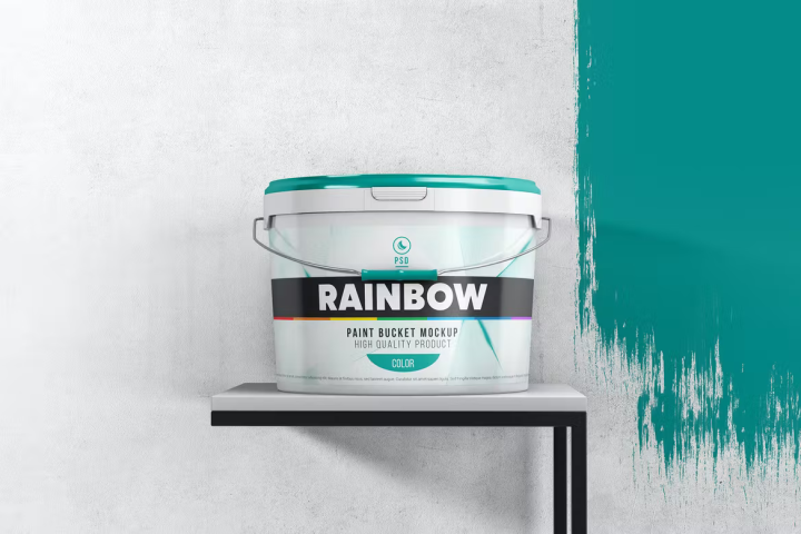 3d, Acrylic ,Paint ,Branding, Bucket, Can, Ink, Label ,Mockup, Painting ,Plastic ,Template, Wall ,Package ,Container, gfx