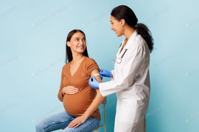 Vaccination, Covid-19, Vaccinated, Pregnant, Pregnancy, Corona virus, Vaccine, Woman, Arm, Nurse, patient, Injection, Doctor, Female, Lady,