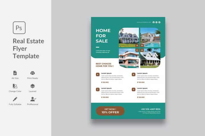 Real Estate Flyer Template: Templates that are designed with a minimalist and modern concept can be used for your business promotion. You can do customization easily.
