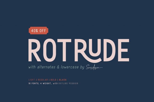 Rotrude Sans is a casual and modern sans. The special things is this font comes with alternates in each alphabets! Every alphabet have alternates up to 3 kinds! This font fits in any project. You can use it for a tittle, logo, quotes, or become a pairing in any font. This font also support multi language! And don’t worry, this font also have LOWERCASE!