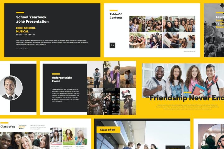 School Yearbook Keynote Presentation is a multipurpose photo collage template for school, university yearbook, graduation, photographs book, and related.