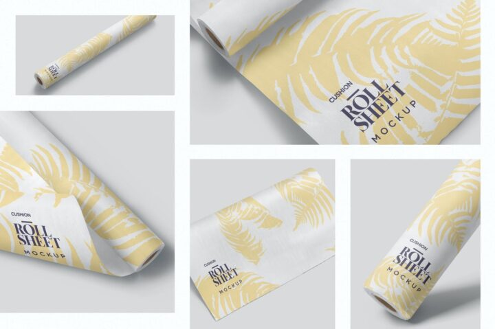 5 PSDs of beautiful shelf liner roll mockups equipped with smart object option and well-named layers. You can easily customize the design, colors, light effects, shadows and background using these tools. You can use these mock ups to show your cabinet shelf liner and cushion roll sheet designs.