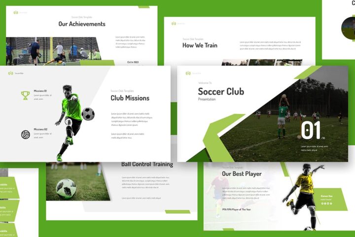 Soccer Club Powerpoint Presentation is a soccer club presentation template, for your soccer club portfolio, company profile, marketing tool kit, and fit for any kind of sports category. Modern look presentation template, come with a flat design element and easy to change the color.