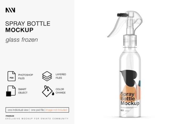 Present your design with this “Spray Bottle” Glass Mockup befrore printing. The file includes seperate layers for the color objects and background. Smart layer for the label helps to apply your design. Premium quality and simle to use.