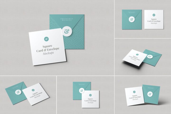 This item consists of 6 Square Card and Envelope Mockups to present your wedding invitation, postcard, artwork, or greeting card design professionally. Available in PSD Photoshop format with smart-object features to help you replace the current designs with your own within seconds.