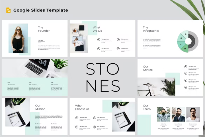 Stones – Modern & Clean Google Slides Template is a stylish presentation template, come with flat design, clean, classic, minimalist, modern presentation, fit for creative industry such as agency, designer, photographer, website developer, ui/ux and other industry.