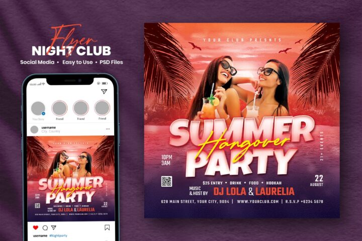 Flyer template for your needs with creative style design, made with love and easy to use, including print and social media posts. perfect for a club party. Enjoy & thank you 🙂