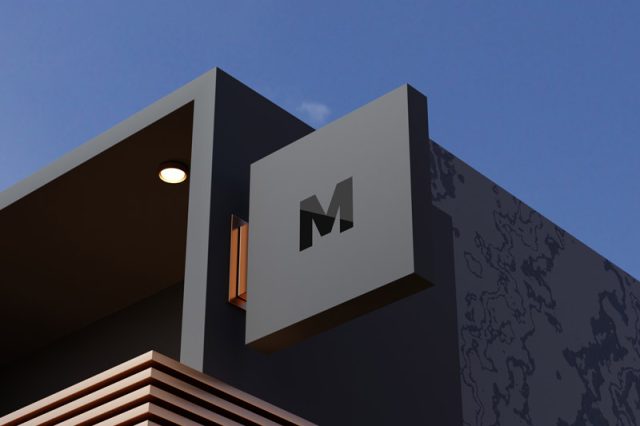 Logo mockup on black facade store sign