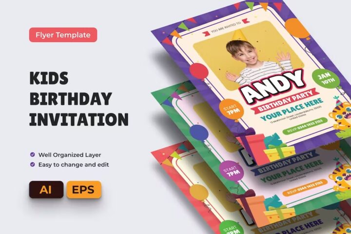 Kids Birthday Invitation Flyer Ai & EPS Template