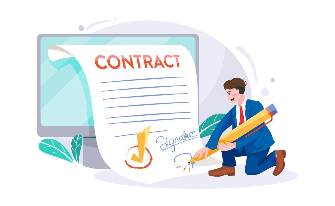 Business people sign official paper concept