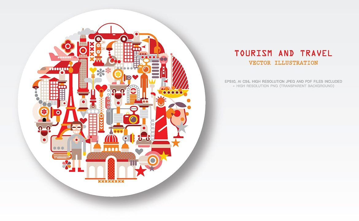 Travel and Tourism round shape vector illustration