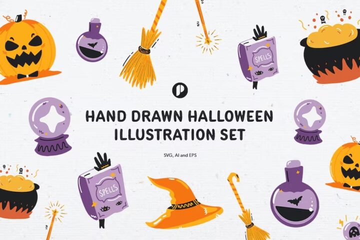 Bubbly Hand Drawn Halloween Illustration Set