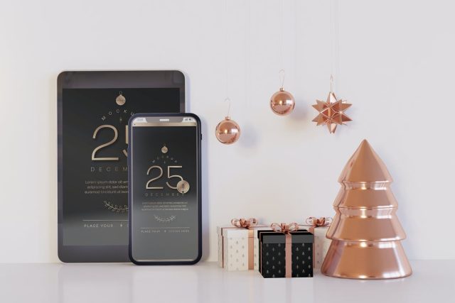 Tablet and Smartphone Mockup with Xmas Decoration